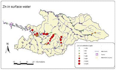 Judetul Maramures concentratia de Zn in apa de suprafata dupa accidentele tehnologice la iazurile de decantare /10/