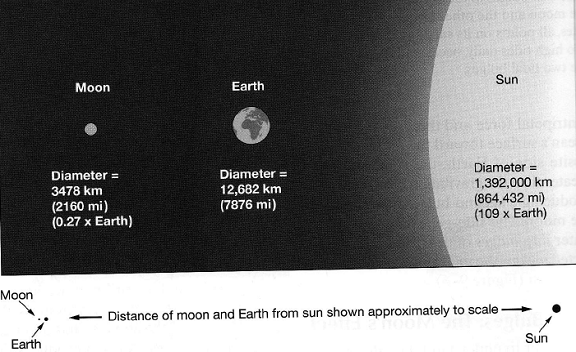 Sus: Diametrul lunii este aproximativ de 4 ori mai mic decat cel al pamantului, in timp ce diametrul soarelui este de 109 ori mai mare decat al Pamantului.