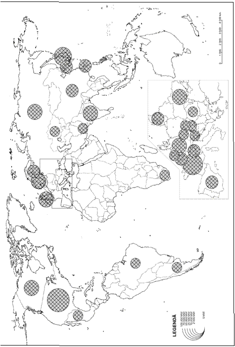 Tari cu potential mare sunt: R.D. Congo, Rusia, China, S.U.A., Brazilia, Canada, Norvegia