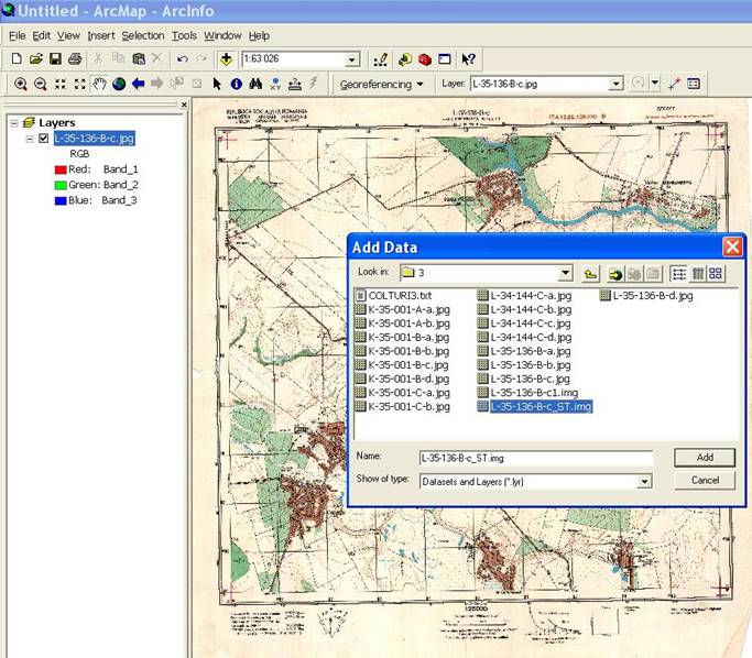 O. Acum mergem in directorul in care am salvat trapezul georeferentiat si aducem cu butonul Add Data trapezul cu terminatia numelui L-35-136-B-c_ST in cazul nostru.