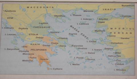 localizeaza cetatile Atena si Vechea Grecie se mai numea si..Ea cuprindea numeroase orase stat, numite si , situate in jurul Marii. Cele mai vestite erau: . si ..Grecii erau mari. si pescari, dar se ocupau si cu., mestesugurile, Cultivau cereale, . si vita de vie. Din cauza reliefului muntos, intre secolele VIII-VI i.Hr grecii au migrat spre tarmurile Marii.. intemeind aici cunoscutele: Histria( in nordul Dobrogei), (Constanta) si Calatis (Mangalia).