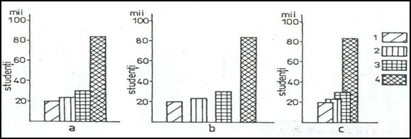 Fig. 1 Diagrama in coloane: a - alaturate; b - izolate; c - in aflux