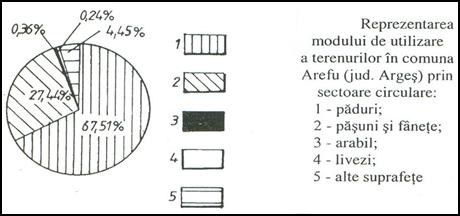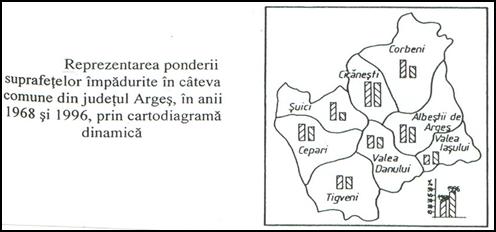 - dinamica sau cronologica, cand se arata dinamica unui fenomen, de exemplu evolutia suprafetelor impadurite in cateva comune din judetul Arges (fig. 34) ;