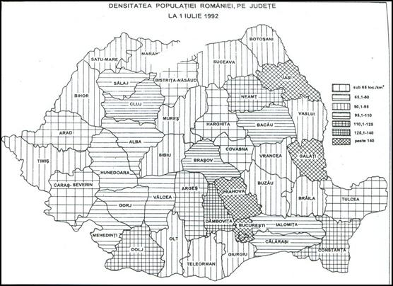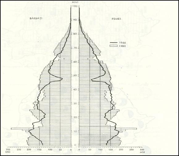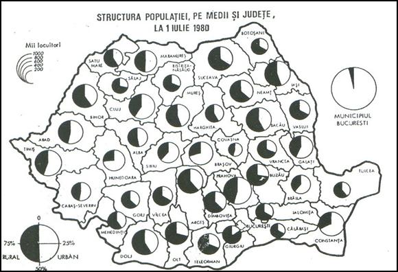 Fig. 33. Reprezentarea structurii populatiei Romaniei, pe judete si medii, in anul 1980