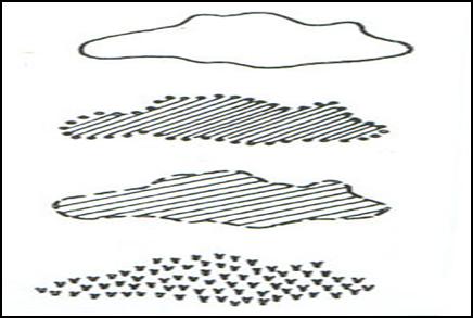 Interiorul arealelor se poate hasura, colora sau completa cu diferite semne, imbinandu-se astfel metoda arealelor cu a semnelor sau a fondului calitativ.