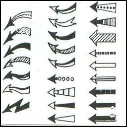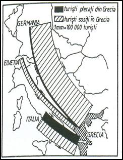 Pentru a scoate in evidenta deosebirile calitative ale fenomenelor, se folosesc linii sau sageti de marimi si culori diferite, lucru ce se va specifica in legenda.