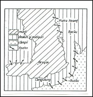 → schematice (la hartile la scara mijlocie si mica, delimitarea fiind aproximativa).