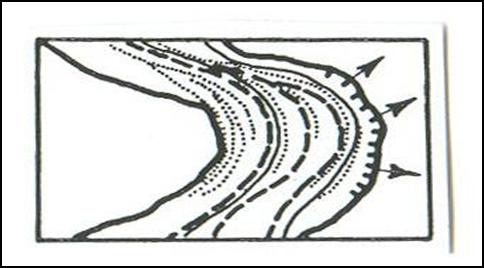 Fig. 46. Evolutia unui meandru prin linii de miscare