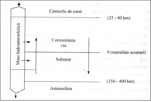 temperatura, densitate s.a.), dincoace de respectivele orizonturi-reper, reflecta "trecerea" conectarilor energetice telurice si extraplanetare intr-un nou nivel organizatoric, cel de sinteza geografica, rezultat prin asocierea variata si transformarea evolutiva corelata a tuturor structurilor planetare (roca, sol, apa, aer, vietuitoare).