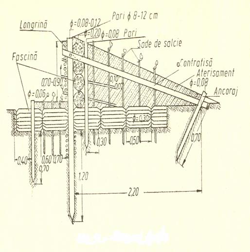 Pe solurile cu textura usoara, unde pericolul spalarii materialului de umplutura si de aterisament este mare, cleionajele nu dau rezultate din cele mai bune si ele sunt inlocuite de fascine.