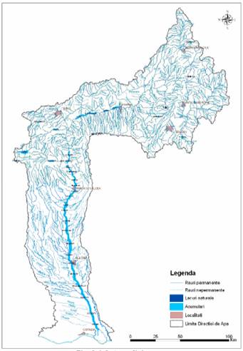 Bazinul hidrografic Olt este situat in partea centrala si de sud a tarii, avand o suprafata de 24050 km2 si o lungime a cursului principal al raului cu acelasi nume de 615 km. Reteaua hidrografica desi variabila, intre 1,4 km/km2 in zona depresiunii Fagaras si 0,156 km/km2 in zona inferioara a Oltului, cu o medie de 0,410 km/km2, poate fi considerata ca densa. Alaturi de cursul principal b.h. Olt este brazdat de importanti afluenti precum Raul Negru (S = 2349 km2; L = 88 km), Cibin (S = 2194 km2; L = 82 km), Lotru (S = 990 km2; L - 83 km), Oltet (S = 2663 km2; L = 185 km). Ca o consecinta a variatiei mari a surselor sale de alimentare, raul Olt are un regim hidrologic compensat si bine echilibrat.