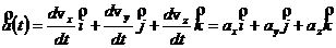 Vectorul acceleratie momentana este derivata intai a vectorului viteza in raport cu timpul, sau derivata a doua a vectorului de pozitie in raport cu timpul: