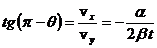 c) Unghiul pe care vectorul viteza il face cu axa Oy este (π - θ),