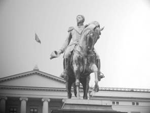 Statuia lui Karl Johan, rege al uniunii dintre Suedia si Norvegia (1814-1844), pe numele sau Jean Baptiste-Bernadotte, fost maresal al lui Napoleon, este cel care practic a initiat modernizarea celor doua regate nordice si intrarea acestora in circuitul economic, politic si cultural european.