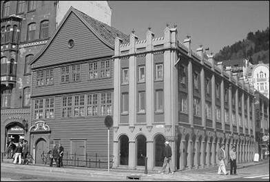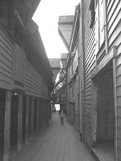 Casele din lemn si aleile pavate cu scindura sunt specific orasului vechi, constituind nota de specificitate a orasului Bergen.