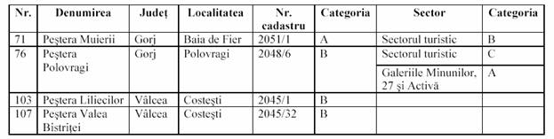 chei. Acestea sunt localizate in zonele carstice Buila-Vanturarita (bazinele raurilor Costesti si Bistrita), zona Cheile Oltetului si zona Cheile Galbenului.