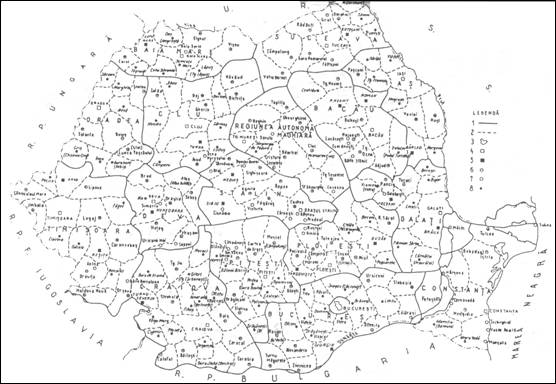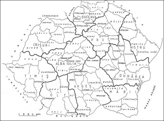 Fig. 45. Organizarea administratriv-teritoriala a Romaniei in perioada interbelica. Sursa: I. Iordan (2003)