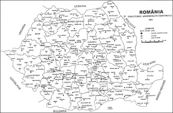 Fig. 48. Organizarea adminsitrativ-teritoriala actuala. Sursa: I. Iordan (2003)