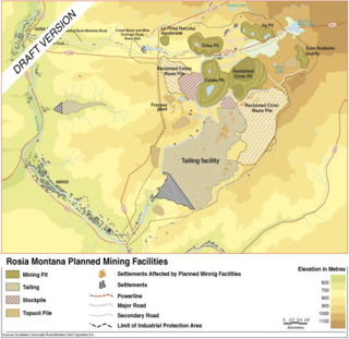 Locul a devenit celebru dupa ce o firma Canadiana, Gabriel Resources, a dorit sa extraga aur din mina folosind tehnica separarii aurului prin cianura, proces ce presupune distrugerea a unei suprafete totale de 16 km² care include cinci munti, patru biserici si cimitire, ruinele cetatii romane Alburnus Maior, precum si poluarea zonei la un nivel ce ar dura sute de ani (in comparatie cu durata maxima de productie a minei ce se estimeaza la 15 ani). In total, compania va folosi o suprafata de of 42.82 km² si estimeaza ca va extrage 300 de tone de aur si 1600 de tone de argint. Compania nu a primit inca autorizatiile necesare inceperii proiectului.