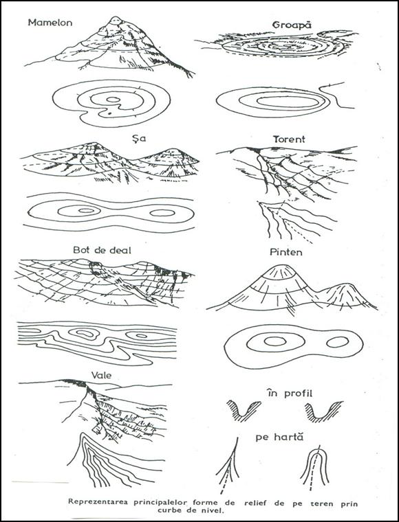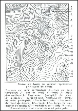 - normale - reprezentate de o linie subtire continua. Echidistanta lor reprezinta 1/5 din echidistanta curbelor de nivel principale