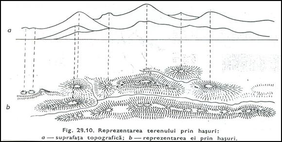 (a- suprafata topografica ; b-reprezentarea ei prin hasuri)