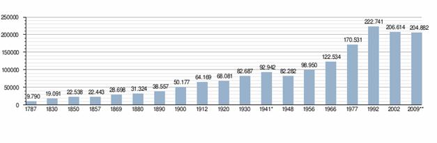 Date oficiale cu privire la populatia orasului exista doar incepand cu secolul XVIII. Inainte de aceasta perioada exista doar estimari vagi. Din punct de vedere demografic, Oradea s-a dezvoltat cel mai mult in secolul XX, populatia orasului crescand de peste patru ori, in decursul a cca. 100 ani.