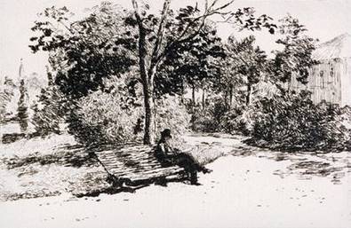 Theodor Aman citind pe o banca in Cismigiu