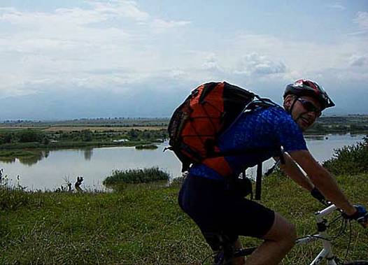 Trecem Oltul umflat de ploile acestei ciudate veri, pe o punte aflata la 300 de metri de abatie, spre satul Nou Roman. De aicea urmam un drum desfundat de tara pana la Colun, urcand si coborand dealuri joase, incercand sa zarim crestele Fagarasului care inca se ascund sub valul norilor. Dupa ce ne realimentam cu apa de la o fantana din Colun si o luam spre Sacadate. Chiar inainte de Glamboaca parasim drumul de tara (greseala mea) pentru digul Oltului, am zarit in departare cele doua drumuri unindu-se, lucru aproape adevarat, doar un canal adanc si plin de apa le desparte. Continuam pe dig pe care il parasim pentru un alt drum de tara (de fapt o poteca intre miristi) cand ajungem aproape de Sacadate. Scurtam ceva, dar reusim sa ne innamolim intr-un asa hal incat franele aproape blocheaza rotile. Le curatam sumar la o adapatoare si intram 'triumfal' in Sacadate, unde luam o mica pauza si mancam frugal. Urcam din nou, de data aceasta un deal mai serios, traversand cumpana apelor dintre Olt si Hartibaciu, de aceasta data spectacolul culmilor fagarasene se desfasoara tulburator in fata ochilor nostri.