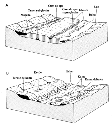 eratice, drumlin-uri, kames-uri, esker-uri.