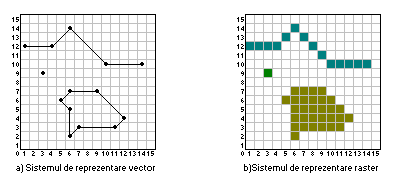 In sistemul raster, tabela de atribut va contine drept cod numarul asociat pixelului, iar procesul decurge similar. O particularitate a sistemului raster este ca, atributul poate sa fie continut in imagine.