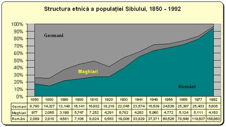 Ca limba materna, in Sibiu domina limba germana, declarata drept limba materna de 16.832 de persoane in 1910, reprezentand aproximativ 50% din locuitori. Era urmata de limbile romana (8824) si maghiara (7252) vorbite de aproximativ 30%, respectiv 20% din locuitori. Restul limbilor erau vorbite fiecare de mai putin de 1% din populatia urbana. Se cuvine mentionata limba idis vorbita de minoritatea evreiasca prezenta in Sibiu la acea data.