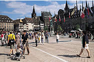 Commencez par un tour à pieds dans la Petite France. Poussez jusqu'au Barrage Vauban et embrasser d'un coup d'oeil le panorama. Revenez ensuite vers le centre pour vous immerger dans le cœur de la ville par la Place Klber. De là, parcourez les rues commerantes, pitonnes, avant d'arriver à l'immanquable Cathdrale. Vous dcouvrirez, l'architecture de ce lieu, mais aussi le mcanisme incroyable de l'Horloge Astronomique. Pour les plus courageux, la vue du haut de ce monument rcompensera la monte des 328 marches. A nouveau les pieds sur terre, sur la place, ne manquez pas de vous arrêter devant l'architecture de la Maison Kammerzell devenue l'un des restaurants phares de la ville. L'expression 'art de vivre ' prend tout son sens en Alsace. On y a le sens de l'hospitalit, le goût des bonnes choses, on sait s'y amuser .et prendre le temps de vivre! Aussi, entre deux visites de chefs d'œuvre, laissez-vous aller aux plaisirs locaux !
