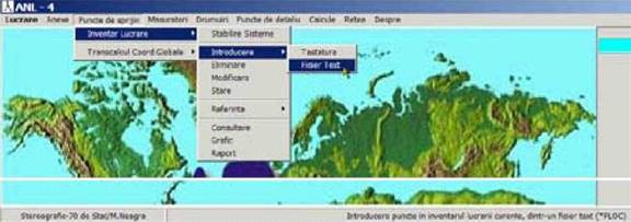 Date privind puncte de sprijin sau masuratori pot fi introduse atat de la tastatura, cat si din fisiere text. Dupa precizarea fisierului din care urmeaza a fi preluate datele respective, textul respectiv este incarcat in memorie si afisat intr-o fereastra de editare . Utilizatorul poate edita textul afisat (poate modifica valorile existente, poate adauga noi randuri, poate sterge randuri existente).