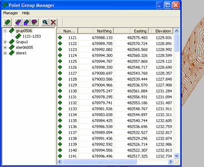 Pot fi grupate prin intermediul " Points grup manager " un anumit grup de puncte putand astfel selecta doar anumite puncte ce pot defini cat mai real M.D.A.T-ul (Fig.49) .