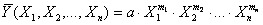 Printr-o astfel de functie se defineste o legatura intre nivelul productiei Y si factorii de care aceasta depinde: productivitatea muncii, calificarea fortei de munca, gradul de inzestrare cu capital fix, etc. Determinarea parametrilor se face prin reducere la cazul liniar prin logaritmare: