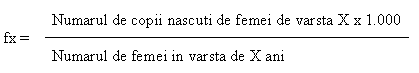 -varsta fertila (varsta fertila): intervalul de timp in care fiinta umana este capabila sa procreeze (de obicei, intre menarha si climacteriu): 15-49 ani, cuprinzand 35 de clase de varsta sau de cohorte;