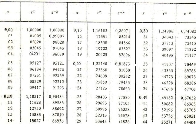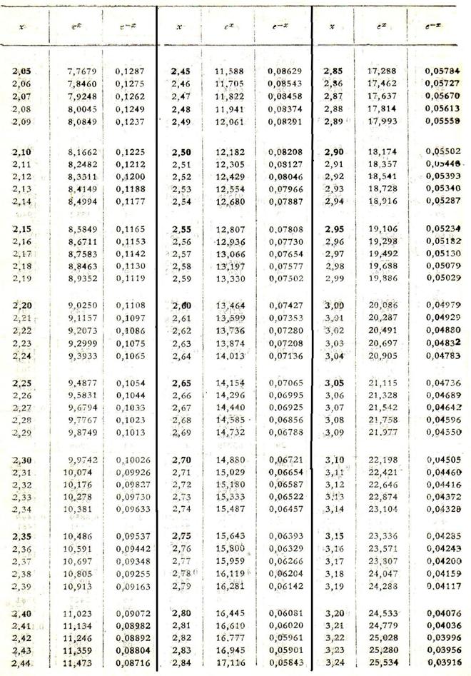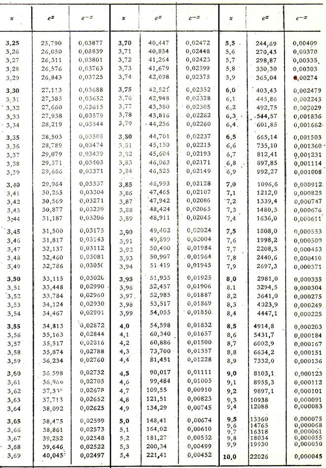 In tabelul de mai sus cu valorile e-x aveti valori numai pentru o medie pana la 10; cu cat valoarea mediei este apoi mai mare valoarea lui e-x va fi tot mai mica: