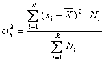 Relatia de calcul a variantei se particularizeaza in raport cu tipul seriei. In cazul unei serii care are la baza o variabila X discreta, conform definitiei, varianta are expresia: