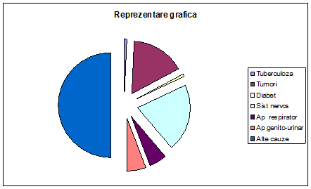 In anul 2001 ponderea ponderea cea mai mare a cauzelor de decese in Romania o detin alte cauze decat cele prezentate.ponderea cea mai mica apartinad deceselo cauzate de diabet cu 0,8%.