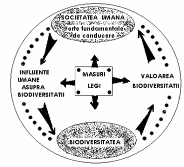 Fig. 6-40. Reprezentarea schematica a interactiunii dintre societatea umana si biodiversitate (dupa Heywood si Baste, 1995).