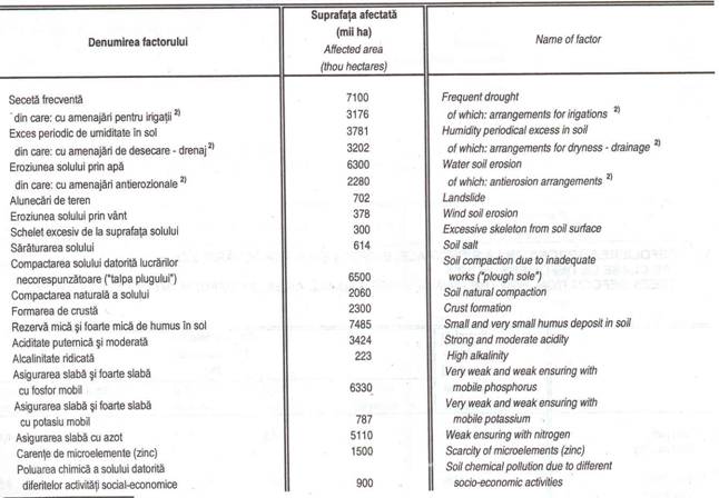 SUPRAFATA TERENURILOR AGRICOLE AFECTATE DE DIVERSI FACTORI LIMITATIVI AI CAPACITATII PRODUCTIVE, IN 2003