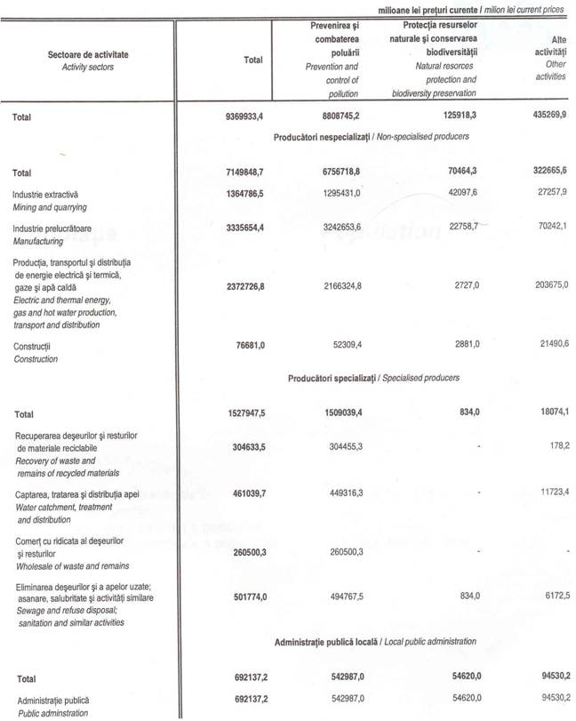 INVESTITII PENTRU PROTECTIA MEDIULUI PE CATEGORII DE PRODUCATORI SI GRUPE DE ACTIVITATI SPECIFICE, IN 2003