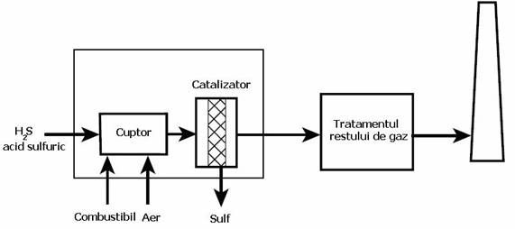 H2S este un poluant des intalnit in instalațiile de prelucrare a petrolului si a gazelor natural. Multe instalții au in componența unitați de recuperare a sulfului care transforma H2S in sulf elementar folosind metoda Claus (Desulfurare). O diagrama simplificata a acestui proces este prezentata in Figura 3. In acest proces in doua etape o parte din H2S este transformat in SO2. Procesul de combustie trebuie controlat cu multa atenție pentru a se putea obține concentrația molara de 2 moli de H2S pentru fiecare mol de SO2. Pasul urmator consta in trecerea amestecului de H2S si SO2 deasupra catalizatorului, unde H2S este oxidat si SO2 este redus pentru a putea produce sulf elementar prin intermediul reacției:
