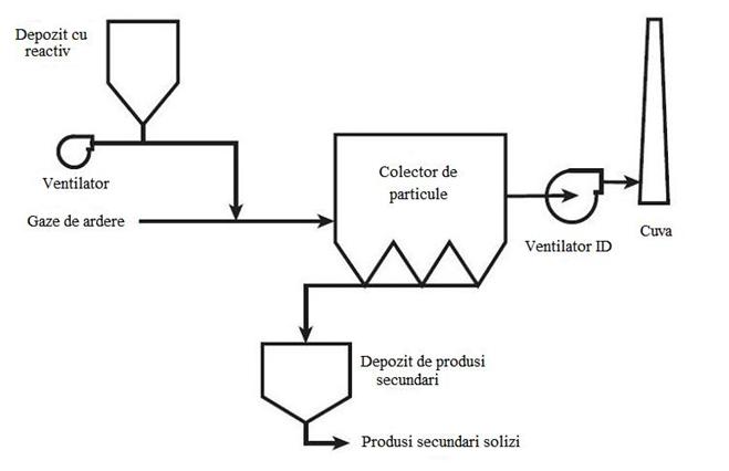 Sisteme bazate pe sodiu uscat - In momentul in care este expus la caldura, bicarbonatul de sodiu uscat se descompune pentru a produce o mare cantitate de soda calcinata uscata. Aceasta reacționeaza cu SO2 la temperaturi de 300-600 F, care este temperatura optima de evacuare a gazelor.