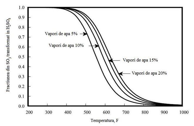H2SO4 ca o functie de temperatura si de continut de vapori de apa in gazele