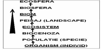 Din punct de vedere ecologic, nivelele ierarhice de organizare sunt in numar de 8
