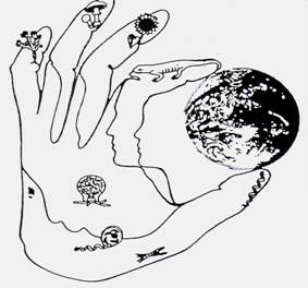 Fig. 13-bis. Diversitatea lumii vii este "in mainile noastre" sau altfel spus, Viata pe Terra depinde de armonia dintre cele 5 regnuri ale viului (dupa Margulis si Schwartz, 2000).