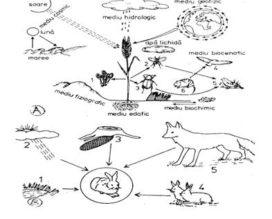 Fig. 4-1,B sugereaza ansamblul de factori de mediu de care depinde supravietuirea unui individ. Acest ansamblu este mediul individului. Ca un individ sa poata supravietui este necesar sa realizeze functiile sale ecologice adica toate activitatile vitale care-i permit sa reziste fata de presiunea puternica a mediului.