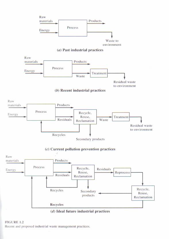 Pe masura ce aceste impacte au devenit cunoscute, industriile au inceput sa trateze deseurile pentru a le indeparta pe cele mai iesite din comun (vezi Fig. 1.2b). eventual, unele industrii incepeau reciclarea si refolosirea unora dintre materiale (vezi Fig. 1.2c).