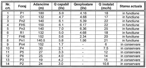 - stratul acvifer de mare adancime (Stratele de Fratesti), extins la baza complexului marnos care dispune de cantitati mari de apa de calitate superioara;